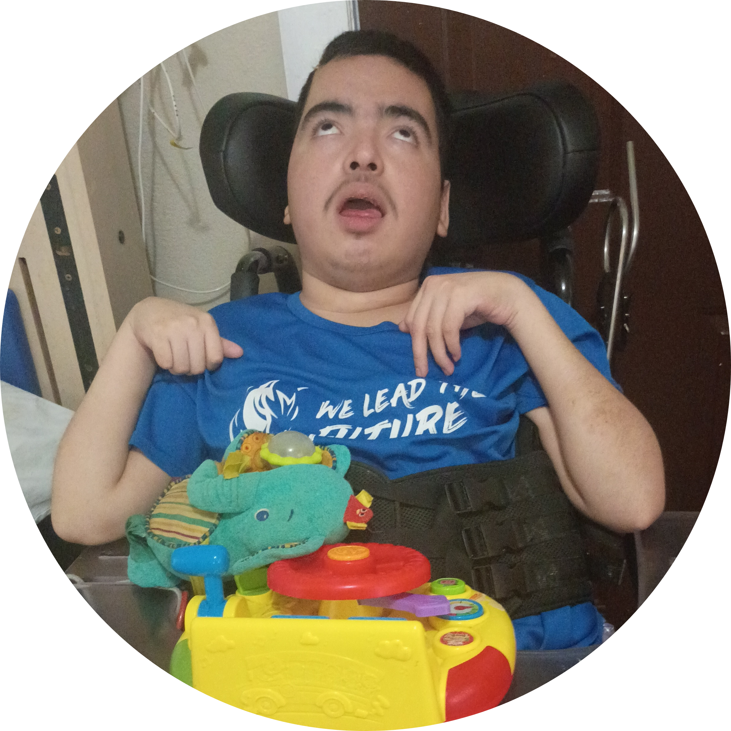 Eduardo is a kindhearted young man living with hydrocephalus and cerebral palsy. He faces significant challenges with mobility, cognition, and grasping ability, yet he finds joy in music and toys that make sounds. His family, who also cares for another child with disabilities, would greatly benefit from adaptive equipment and gifts that bring both comfort and encouragement.